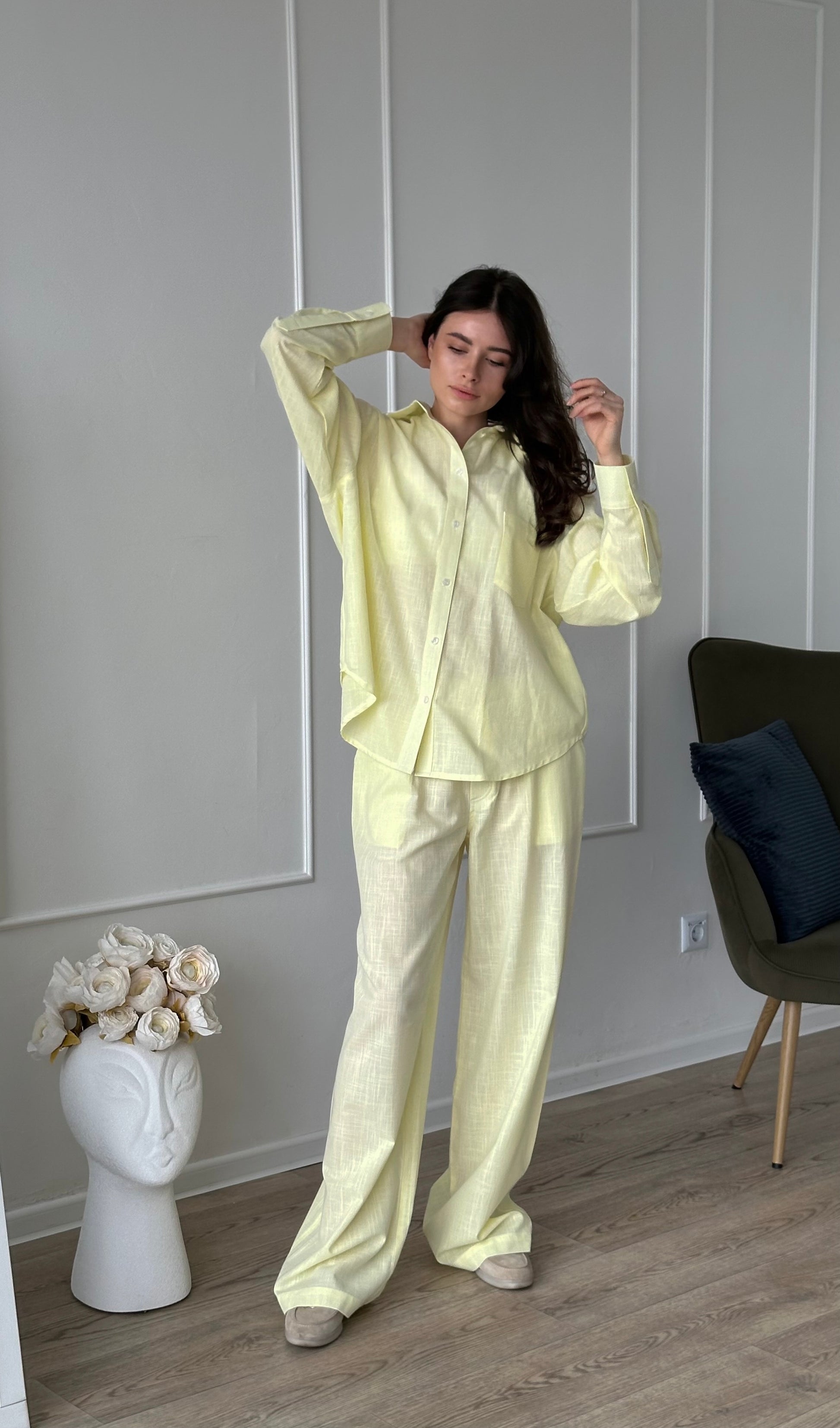 Лляний костюм з палаццо